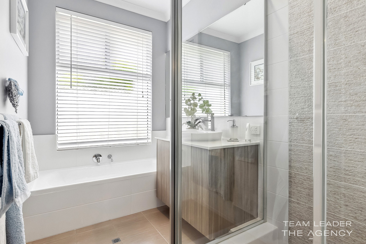 Sitting on a corner block, this home is all about clean, easy living. From the moment you walk in, you’ll notice how elegant and modern everything feels. The entrance is nice and wide, making the home feel spacious right from the start. The main bedroom is located at the front of the house, offering a peaceful retreat. It includes his-and-hers walk-in robes (so no arguing over closet space!) and a double shower in the ensuite.